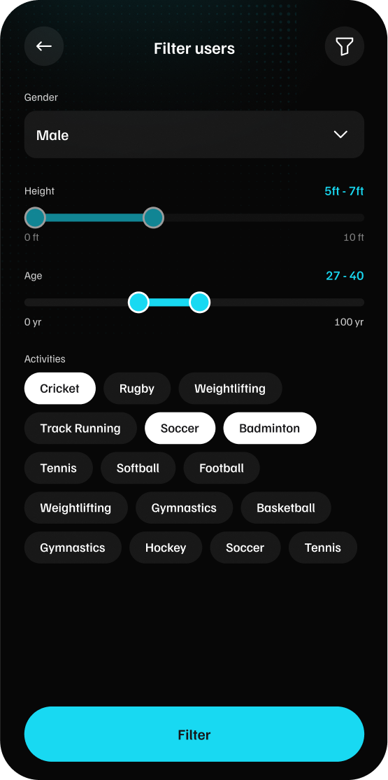 Whether you’re into solo workouts or team sports – training is even more fun with the right people around you. Our app connects you with fellow athletes who share your passion.