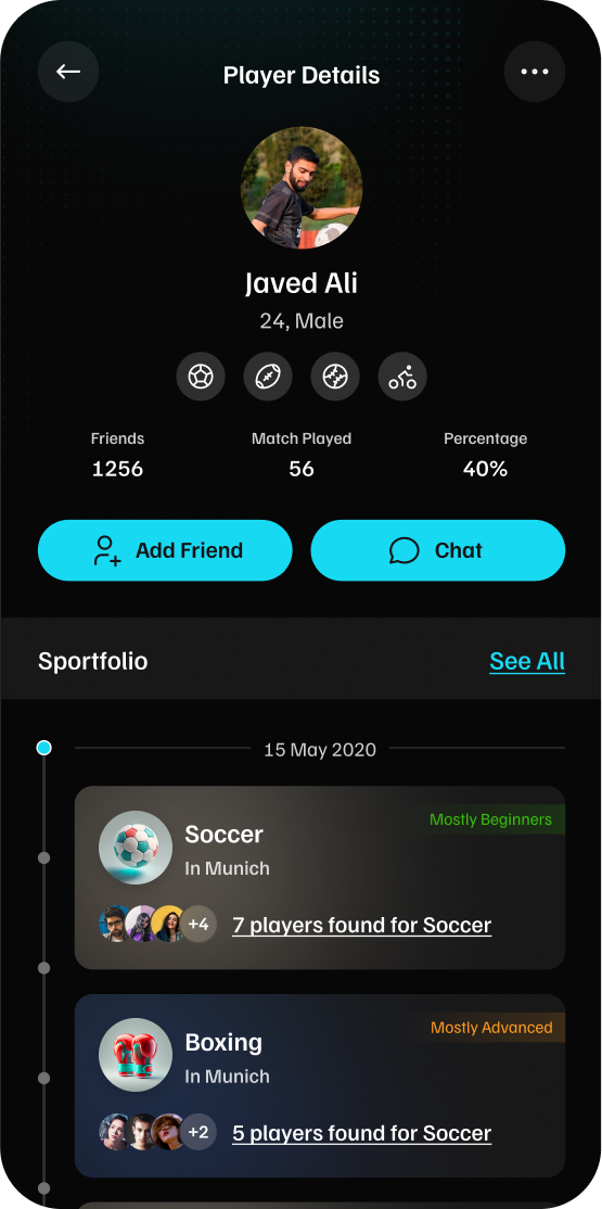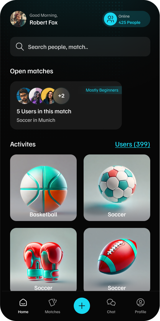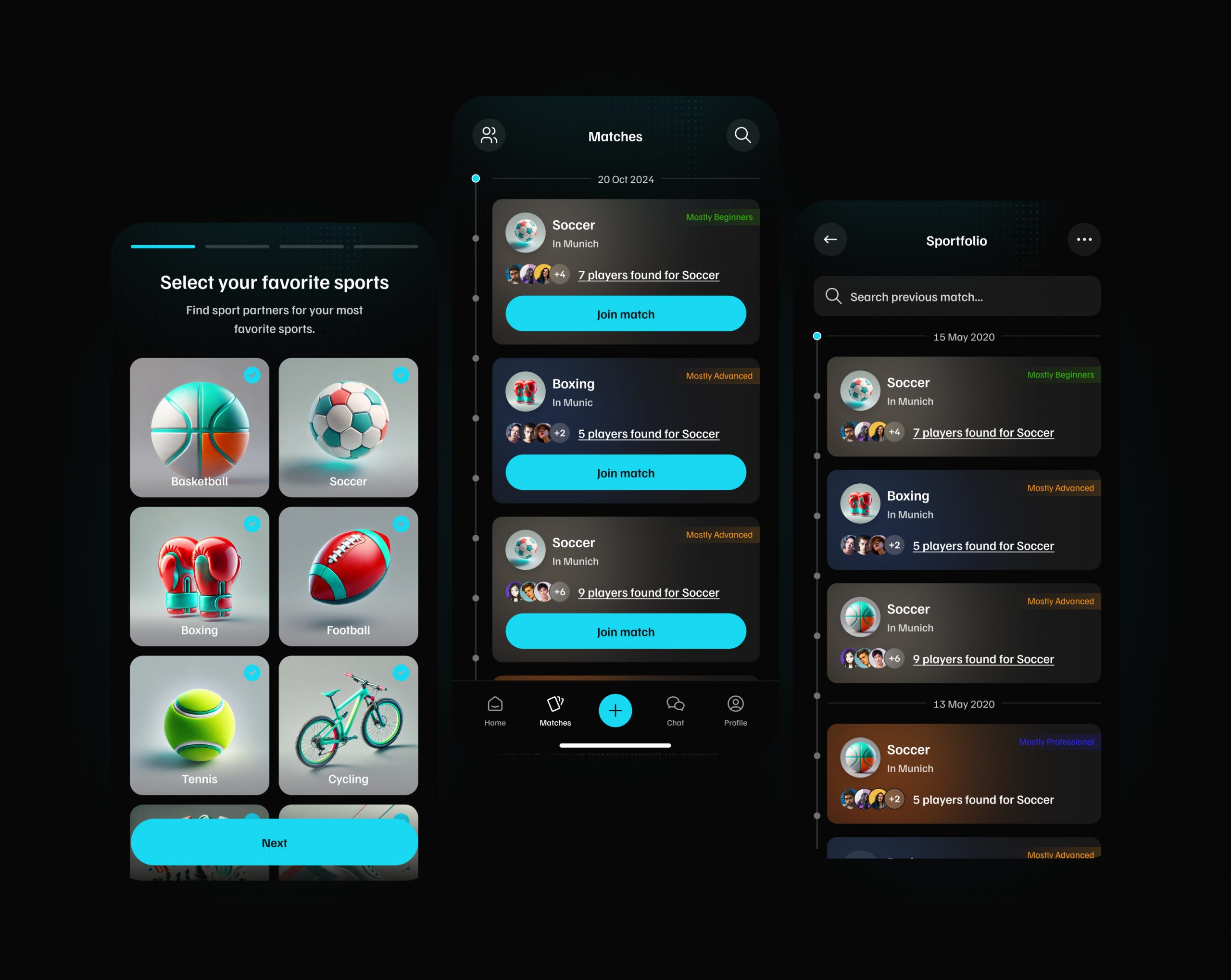 We wanted to create a solution that makes it easier for people to connect through their passion for sport – without barriers, with a clear purpose: sport should bring people together, not make things complicated. That’s exactly what our app is all about. It helps you find like-minded athletes, make new connections, and get active together – regularly or on the fly.